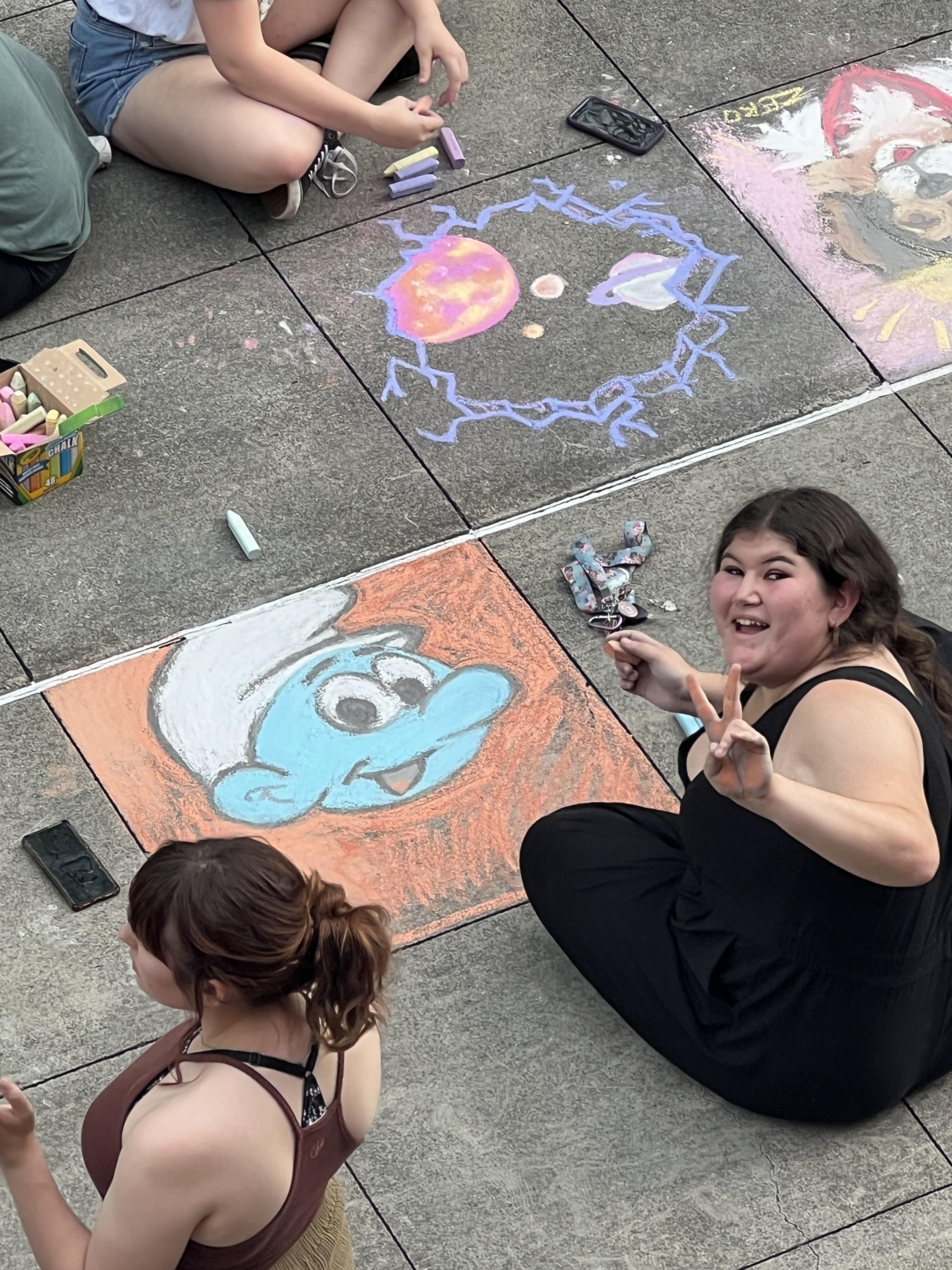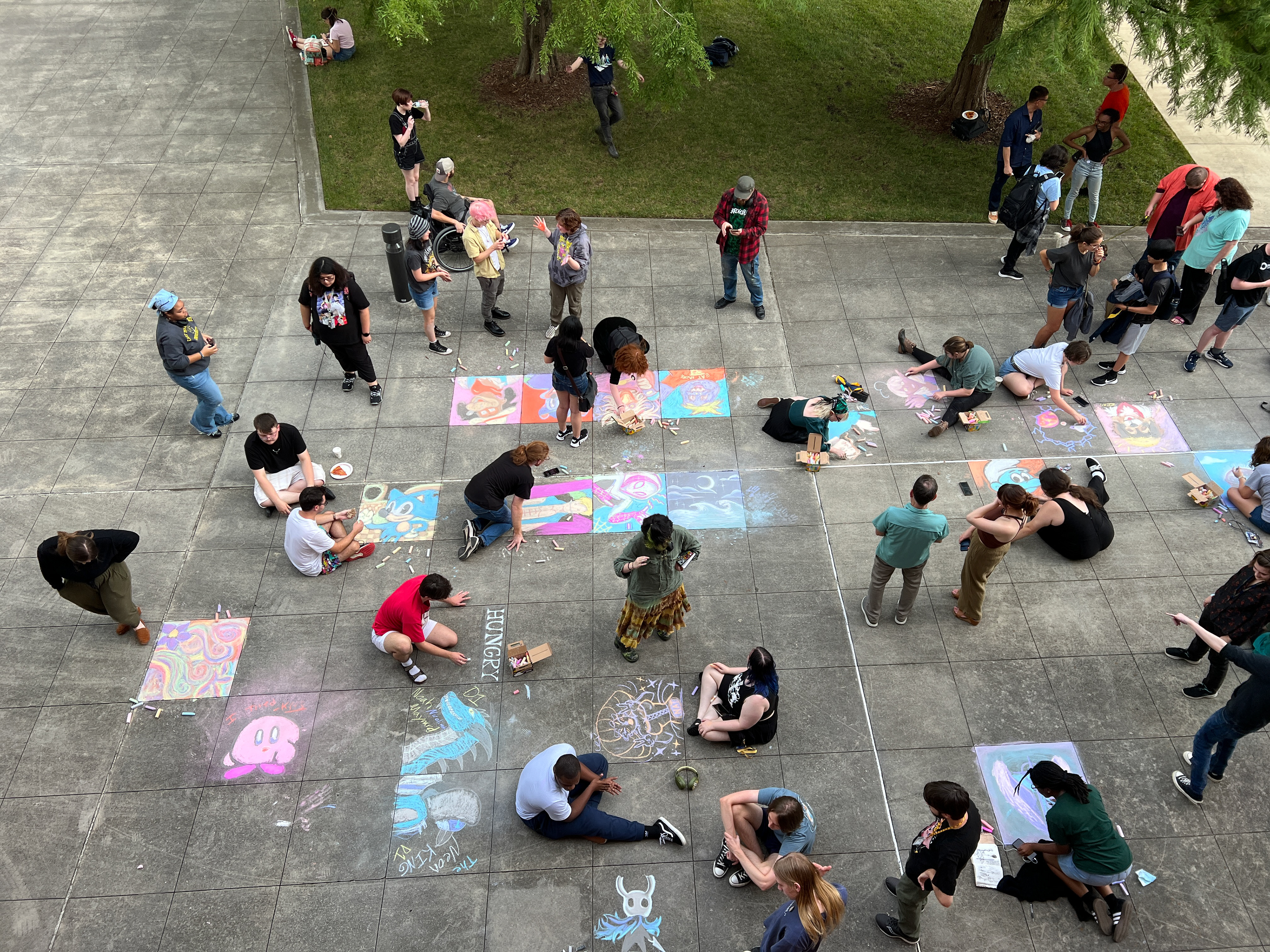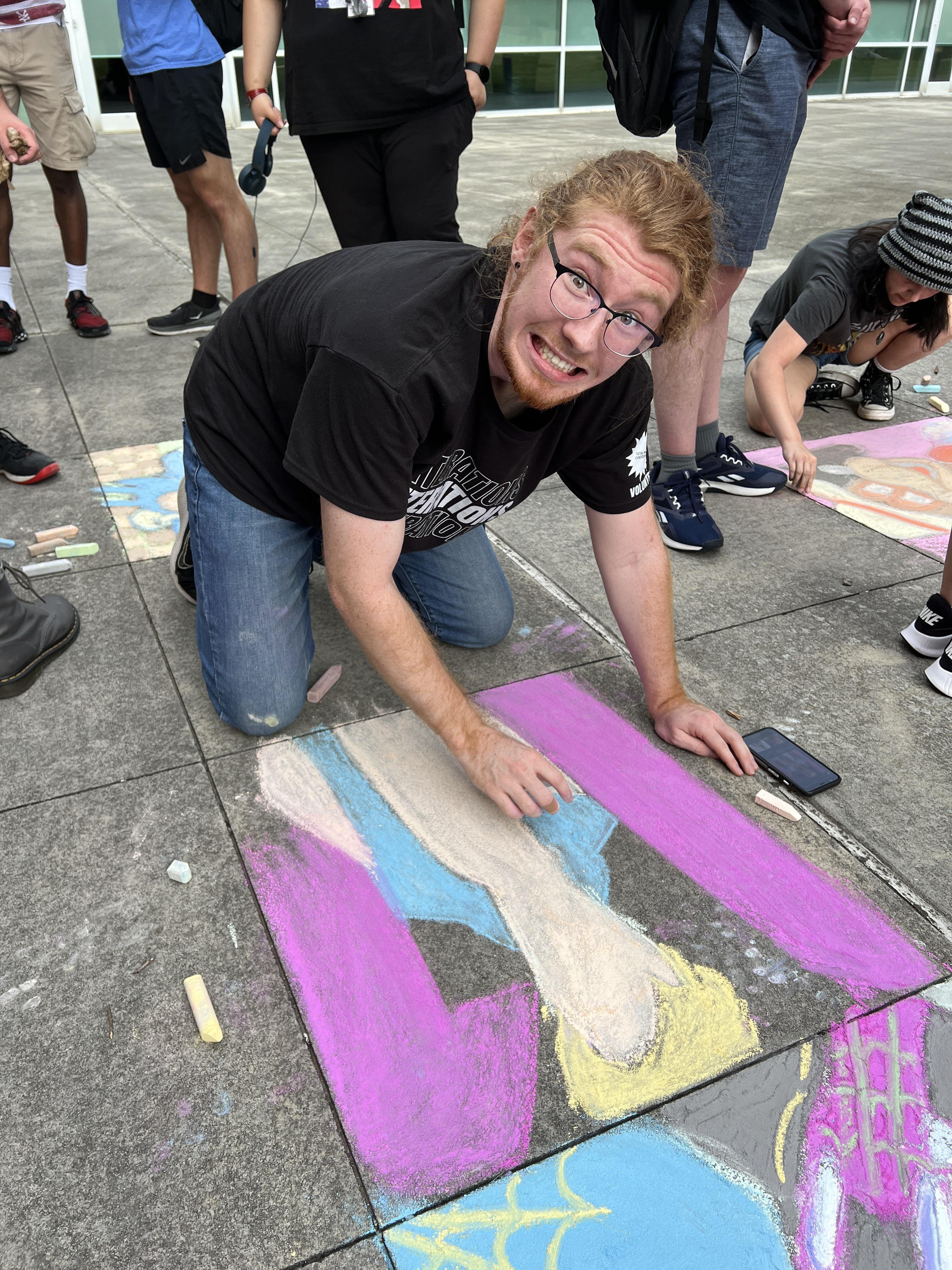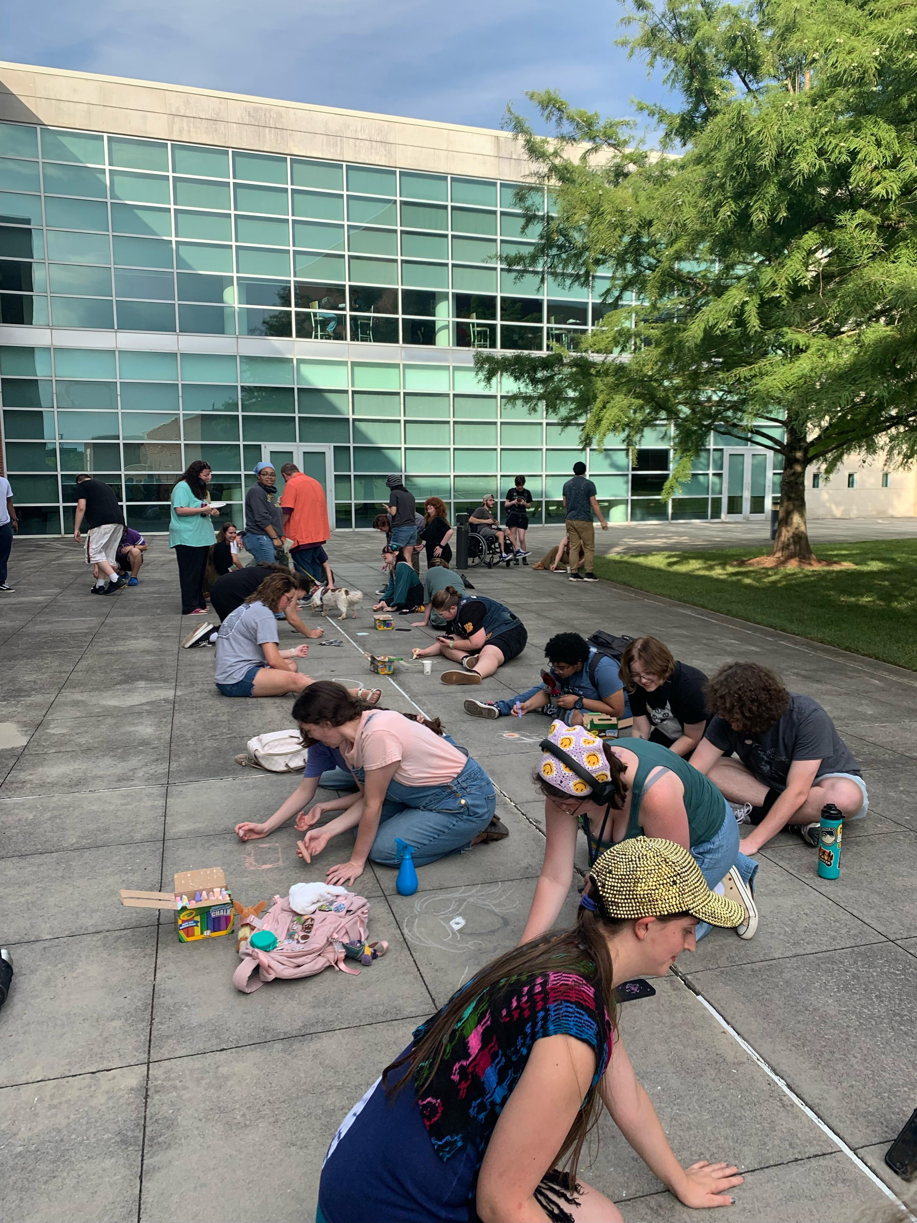 Chalk the Block is an event that the department of Digital Media has been hosting since 2022. The purpose of this event is to encourage community at the beginning of the semester. This is an event that is crafted for creating relationships, learning names, and student retention.