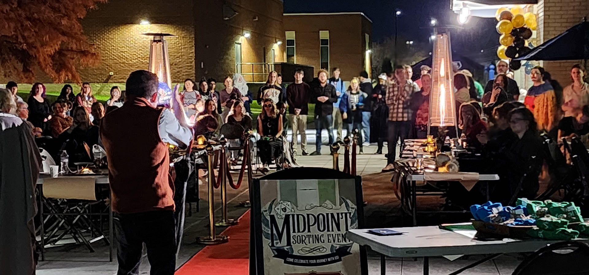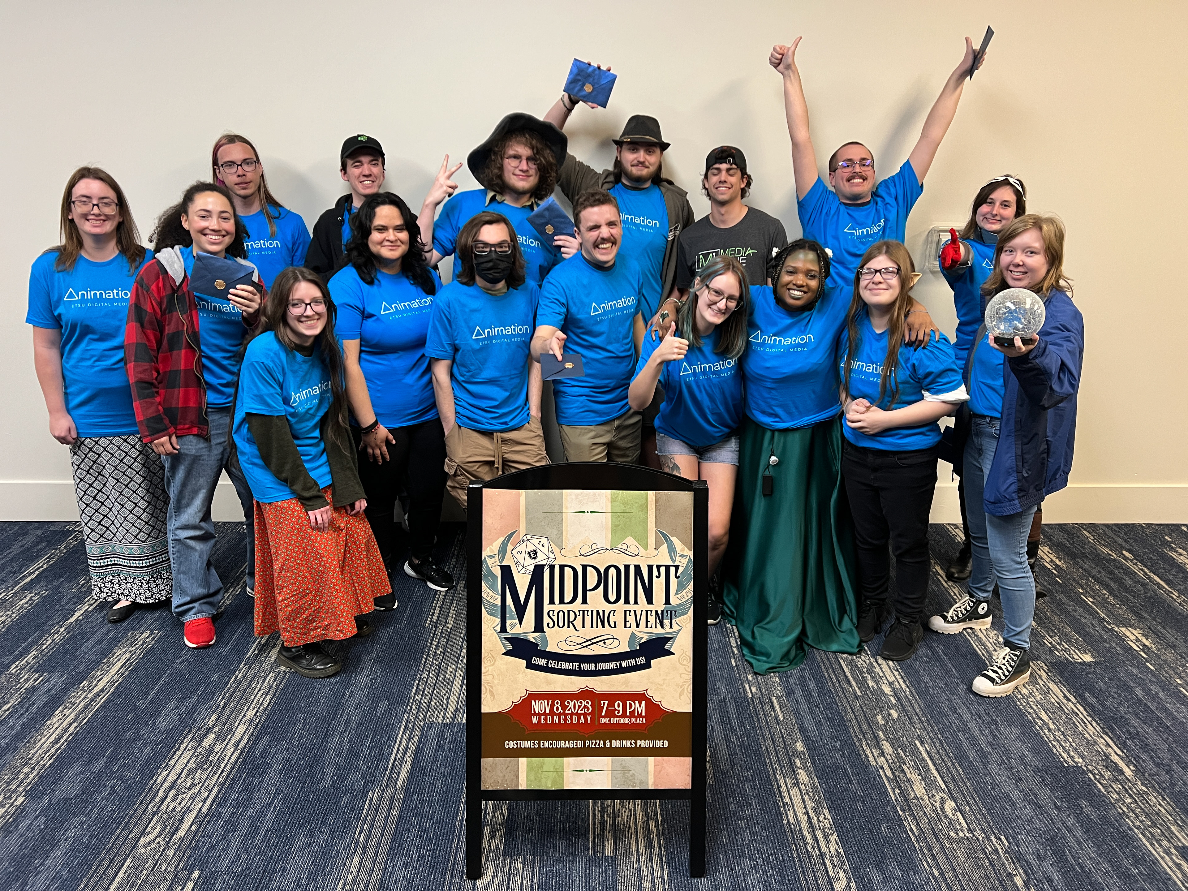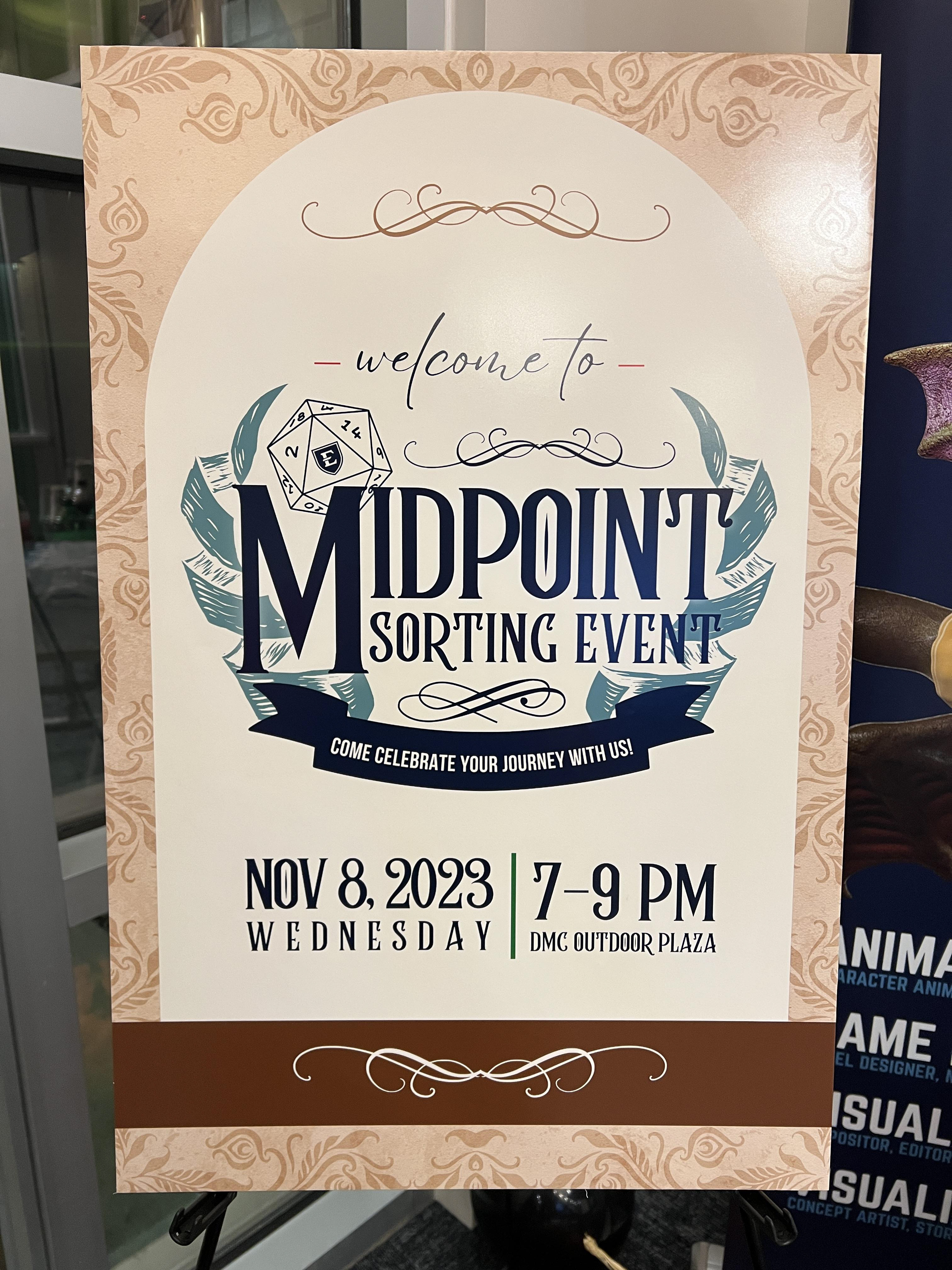 Roll for initiative! Digital Media's biannual Midpoint Sorting Event took place on November 8, 2023. For this event, ETSU’s Digital Media program celebrates their students who have recently passed their midpoint portfolio review- the first milestone of their journey in the Digital Media concentration. This was my first Midpoint Sorting Event working for the department of Digital Media, designed around a Dungeons & Dragon's-theme for the students in this semester's class.