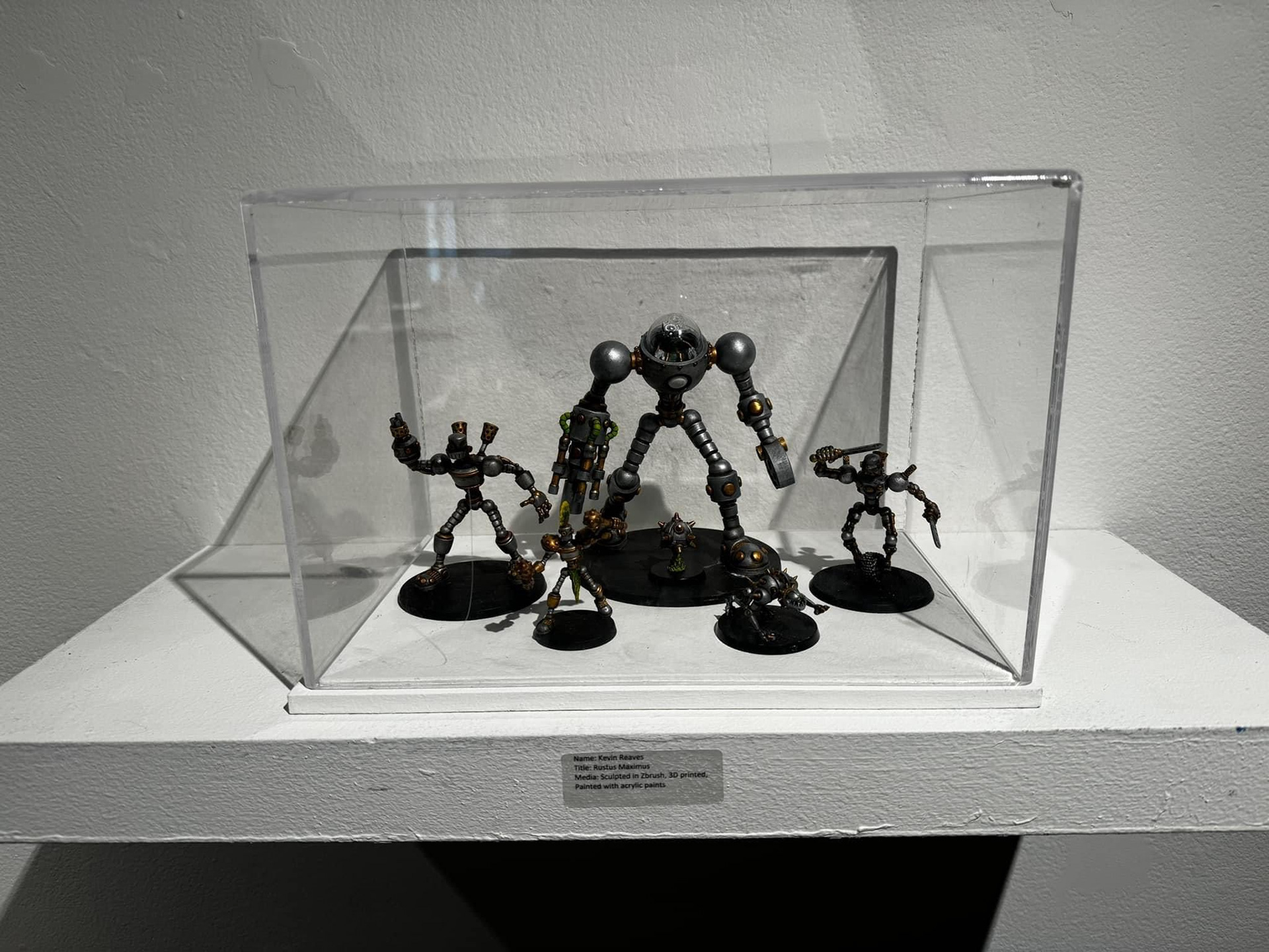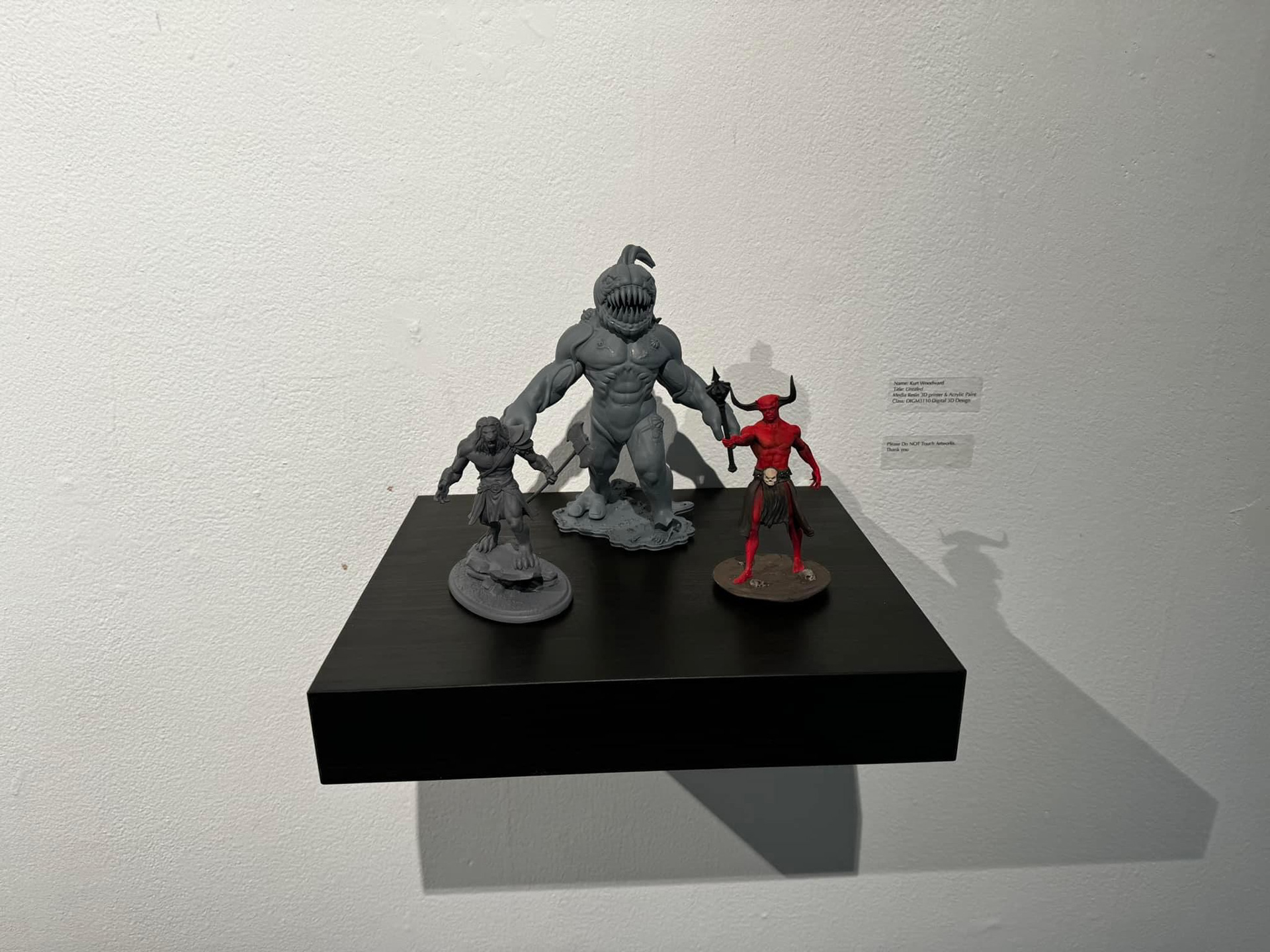 Pieces done in this show were created in softwares such as ZBrush and Autodesk Maya, and 3D printed for display. Professor Somasa also hosted a painting workshop for the students for them to learn how to paint their pieces.